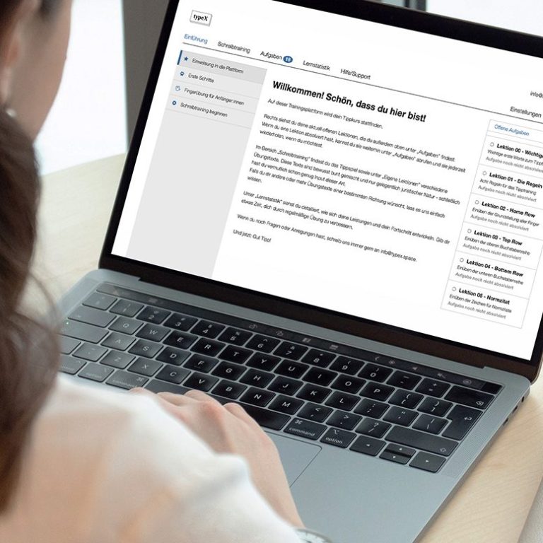 18 abgestimmte Einheiten vermitteln dir Schritt-für-Schritt das 10-Finger-System effektiv im juristischen Kontext.